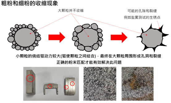 圖10.粉末顆粒過大造成產(chǎn)品的表面與內(nèi)部孔隙7.對于PM/MIM/MAM工藝的綜合差異分析答:雖然在前面已經(jīng)有所描述,但仍將各項比較參數(shù)整理放置于表2所示。由于MAM是區(qū)分為兩大類別,熔融法比較偏向PM使用較大顆粒粉末,而燒結(jié)法則是使用與MIM相近的顆粒粉末,近年來MAM技術(shù)的發(fā)展到極小(可以接打印心臟血管用記憶合金支架,直徑約0.1mm中空特征,德國技術(shù)),到直接打飛機的尾翼與翅膀的大形結(jié)構(gòu)(超過百公斤,大陸開發(fā)的指向性激光打印設備),都已經(jīng)超過PM/MIM的尺寸與重量限制(上下限),同時還做到模造技術(shù)無法成型的網(wǎng)格或是晶格結(jié)構(gòu)(統(tǒng)稱拓樸結(jié)構(gòu)),請讀者注意。表2. PM/MIM/MAM工藝的差異性